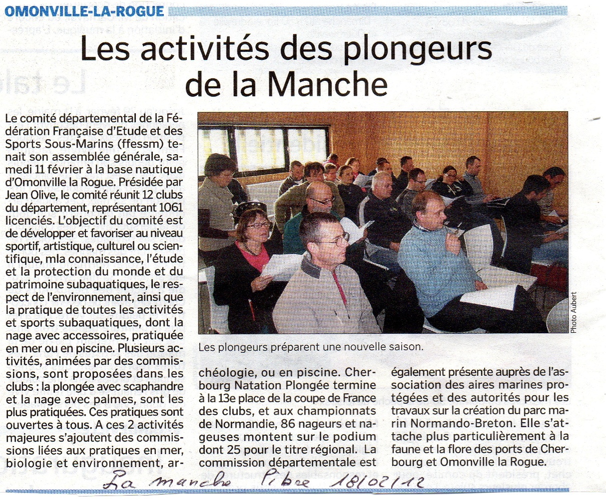 Le 4 février 2012 : Assemblée Générale du FFESSM Manche à Omonville.