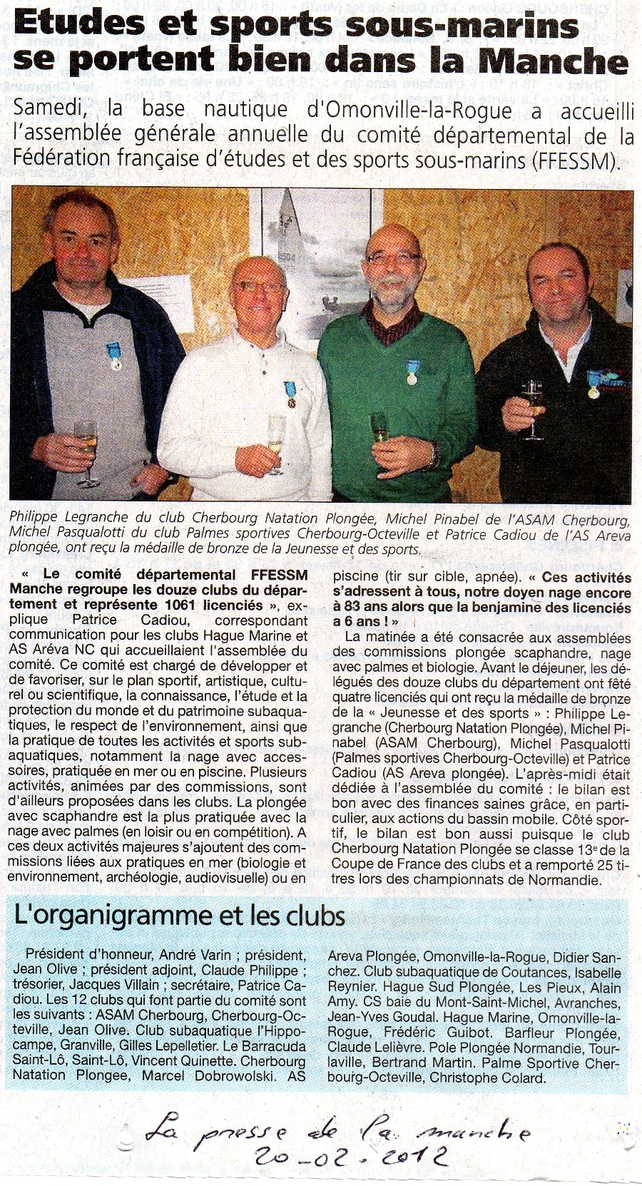 "Samedi les clubs Hague Marine et AS AREVA plongée accueillaient l’assemblée générale annuelle du comité