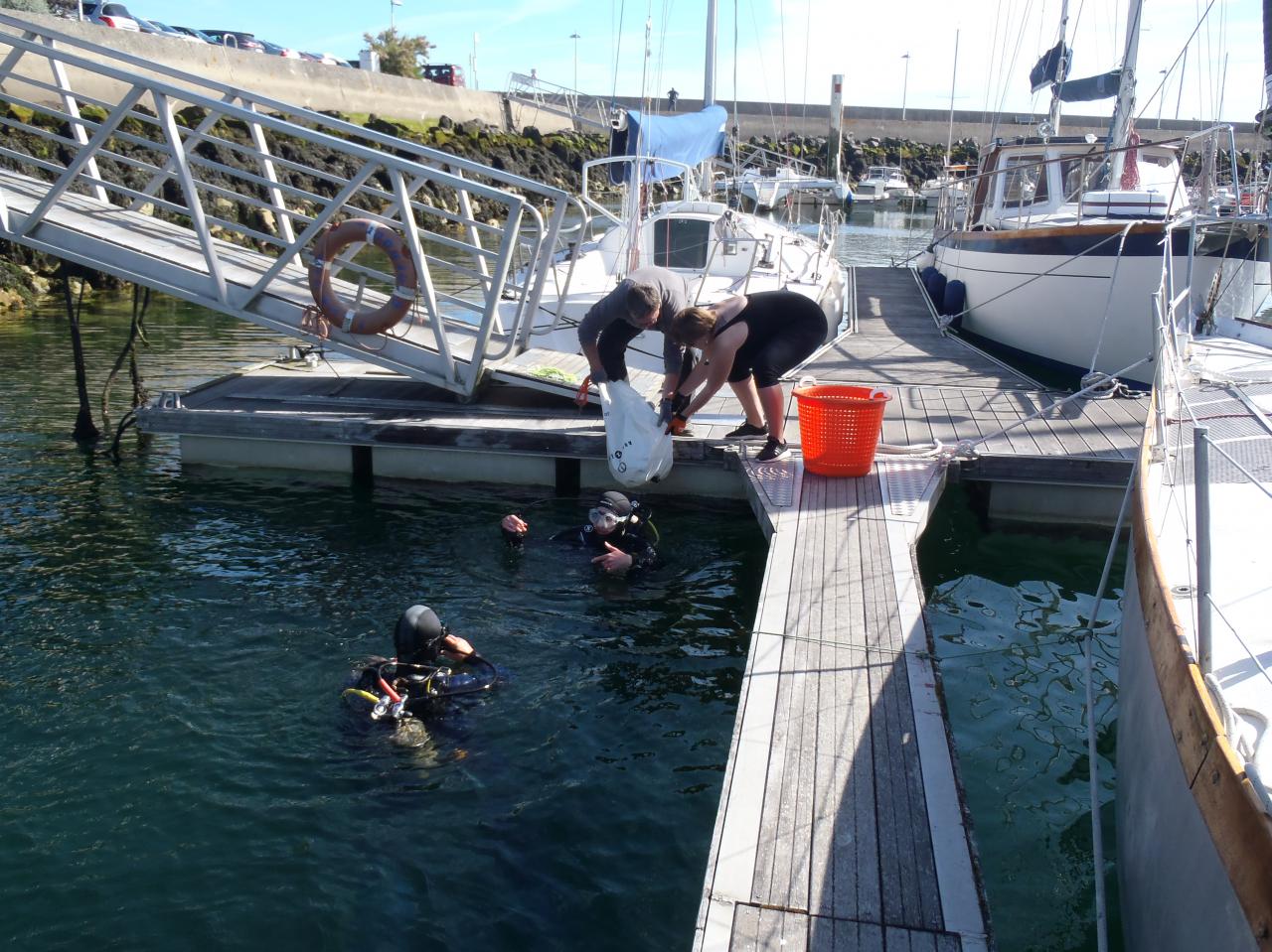 "sensibilisation au rejet des macro déchets en mer" dans le port de plaisance de Cherbourg. Nous étions quinze, dont dix dans