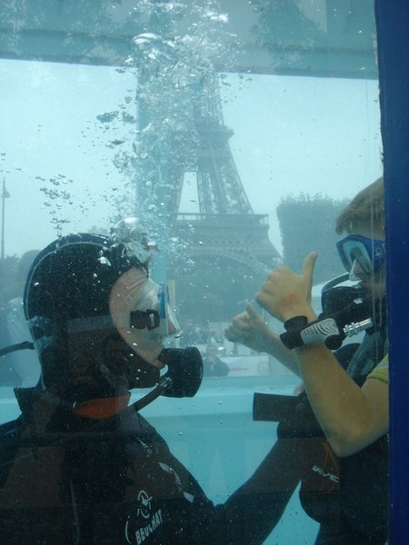 Cette piscine a été construite en 1995, pour la fête du sport à Cherbourg, sur l’initiative de Thierry NOEL, directeur de la base FFESSM de plongée de Tourlaville, sous la présidence CDASM (*) d’André VARIN, et avec l’appui de Patrice COUPPEY, conseiller technique régionale Plongée.